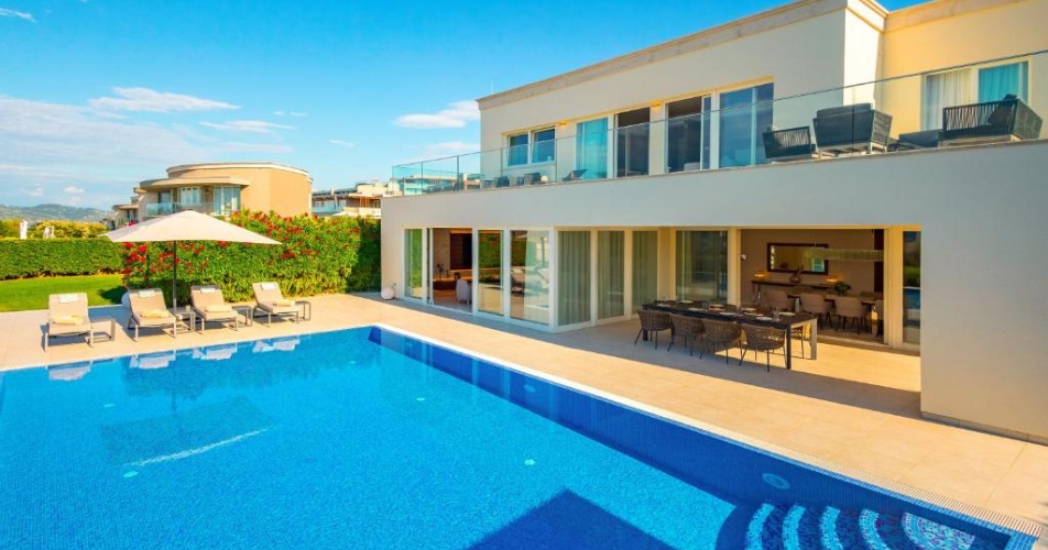 The outdoor area features a private swimming pool, a shaded dining terrace, and a Mediterranean garden that blends seamlessly with the natural surroundings. Just a short stroll from the coastline, Lusso Mare offers the perfect setting for relaxed mornings, late dinners, and everything in between.